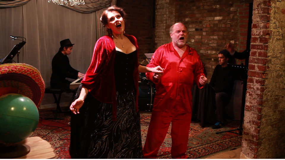 Judith Barnes, director & mezzo soprano; Irena Romendik, video artist, performer; Dmitriy Glivinskiy, piano. A production of Vertical Player Repertory.