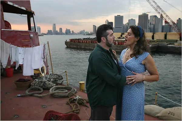 As Giorgetta in Puccini’s IL TABARRO on the docks in Red Hook, Brooklyn, photo Michael Nagle for The New York Times